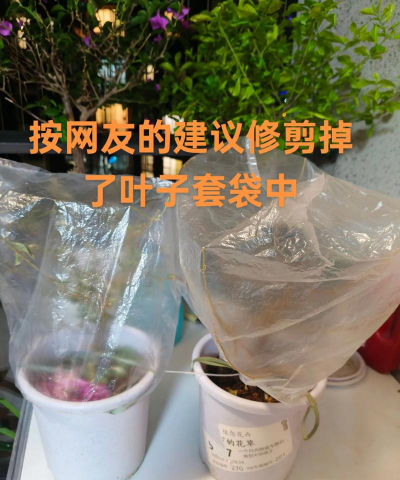 - 在花盆周围或花枝上套上一层透明或半透明的塑料袋。