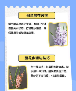 剑兰是一种常见的观赏植物,其花期较长,适合在春季或秋季种植和养护。以下是剑兰醒花(即促花)和日常养护的基本方法:
