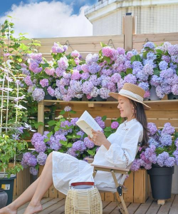 绣球花喜欢半阴环境,每天需要6小时以上的散射光。如果露台阳光强烈,可以适当遮荫,避免中午阳光直射。