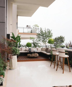 - 可设置小型花架,摆放小型盆栽,打造自然景观。