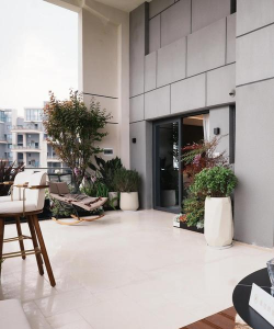 大平层空间较大,可考虑种植大型植物,如琴叶榕、发财树、龟背竹等,既美观又实用。浇水与养护