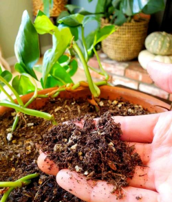 - 换土:使用疏松透气的土壤,如腐殖土、珍珠岩、蛭石等。
