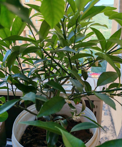 植物状态:金桔叶片呈绿色,无明显斑点,新芽长出,花蕾逐渐显现。
