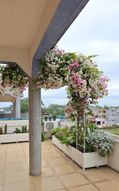 - 盆栽种植:在阳台或楼外设置多盆花盆,便于管理和维护。