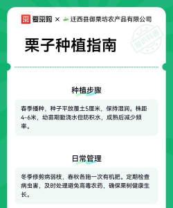 4、病虫害防治与采收。防病治虫要提前,常见病害有胴枯病,还有白粉病炭疽病,冬季清园很重要,剪除病枝集中烧,萌芽前喷石硫合剂,生长季及时喷药,主要虫害有栗瘿蜂,以及桃蛀螟栗实象,利用灯光诱成虫,或者糖醋液来诱杀,化学防治选对药,注意安全间隔期,采收等到栗蓬裂,自然脱落品质佳,捡拾后及时处理,防止霉变和生虫。
