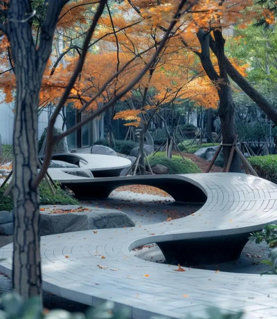 S型线条很柔美,它来自大自然,比如蜿蜒的河流,起伏的山丘,用在绿化里,能打破直线的呆板,让视线跟着曲线走,空间就有了动感,而且,它很自然,不会显得突兀。