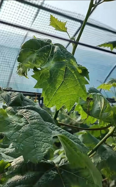 病害防治,第一步是认出来,巨峰葡萄叶子,如果出现黄斑,或者有白粉状东西,那就要警惕了,可能是霜霉病,或者白粉病,果实上如果有小黑点,慢慢腐烂,那可能是炭疽病,早期发现,处理起来就简单多了。