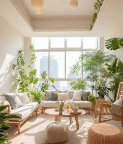 最后是风格搭配绿化也要讲风格,和装修统一,现代简约风,适合线条干净的植物,比如琴叶榕,中式风格家,搭配兰花和竹子,更有韵味,北欧风空间,大叶植物是主角,像天堂鸟,总之要协调,看着才舒服。