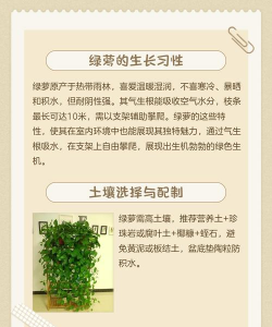 绿萝的根系,比较发达,但怕积水,所以,选花盆时,别用太大的,盆底要有孔,方便排水,土壤呢,要疏松透气,可以用腐叶土,加一些珍珠岩,或者河沙,这样配土,排水性好,根不容易烂。