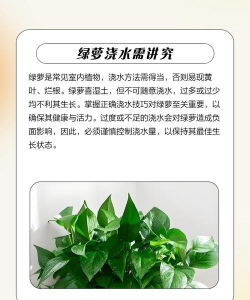 浇水是养绿萝的关键,很多人养不好,问题就出在浇水,绿萝喜欢湿润,但怕积水,所以,浇水要见干见湿,怎么判断呢,你可以摸摸土,表面干了,再浇水,浇就浇透,直到盆底出水,冬天要少浇,因为蒸发慢,夏天可以多浇,但别让盆里积水。