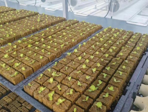 把小苗移入定植块,固定好,别伤到根,接着,就是营养液管理了,浓度要配准,pH值也要调好,通常,每天滴灌几次,保证岩棉湿润,同时,也要注意环境通风。