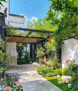 庭院风格要统一,比如现代简约风,或者中式古典风,风格定了,硬质铺装和软装小品,也要跟着走,这样整体才协调,不会显得不伦不类,当然,也可以融入一点海派元素,更有本地特色。