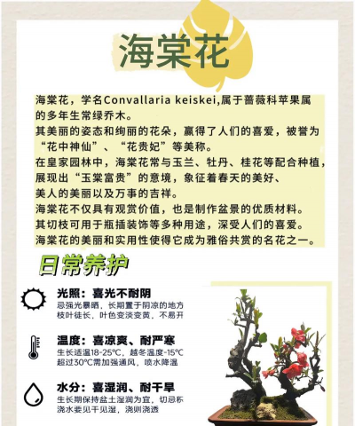 养木海棠要细心,但也不用太紧张,摸清它的脾气,该浇水时浇水,该晒太阳时晒太阳,它就会用灿烂的花朵,回报你的每一分照料,现在就去看看你的花吧,说不定已经有花苞了。