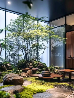 禅意设计的核心是自然,所以,植物选择很重要,尽量选本土品种,它们适应力强,养护也简单,比如竹子、苔藓、蕨类,都是很好的选择,它们形态自然,能营造宁静氛围。