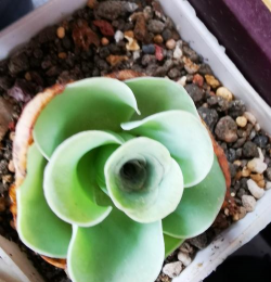 养多肉鸡蛋玫瑰花,花盆不能太大,小一点浅一点的盆最好,因为它的根系不发达,大盆土多水分难干,容易闷根,材质选陶盆或粗陶盆,透气性特别好,底部一定要有排水孔。