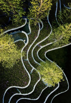 设计时,要遵循一些基本原则,比如,主景区域可以适当抬高,形成视觉焦点,道路和广场的标高,要略高于绿地,方便排水,在低洼处,可以设计成雨水花园,或者下凹式绿地,收集利用雨水,要因地制宜,顺势而为。