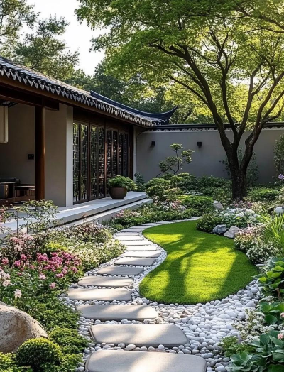 接着是空间布局,这很重要,中式设计注重留白,不会塞满植物,要疏密有致,有藏有露,比如,在墙角种一丛竹子,半遮半掩,让人想去探究,再比如,用蜿蜒的小径,引导视线,创造深远的感觉,空间有了节奏,庭院就有了灵魂。