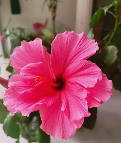 扶桑喜欢阳光,要放在光照足的地方,比如南阳台,或者院子里,光照不足,它就不爱开花,甚至掉叶子,温度也要注意,它怕冷,冬天要搬进屋,保持十度以上,不然容易冻伤。