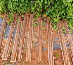 简单说,它就是塑料槽,把它斜着埋进土里,然后山药在里面长,这样做的目的,是为了让山药长得直,而且采收也方便,不用挖很深,省时又省力。