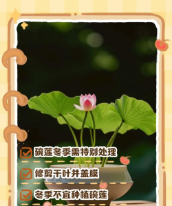 若天气寒冷,可将碗莲盆器移至室内,避免风吹日晒,同时防止虫害。