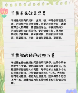 羊粪是一种有机肥料,富含氮、磷、钾等养分,适合用于养花。但需要注意使用方法和放置位置,以确保其效果和安全性。