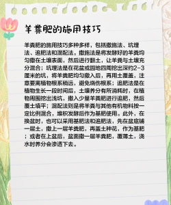 适量使用:羊粪属于有机肥料,过量使用可能会导致土壤板结或养分过多,影响植物生长。