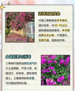 - 选择健康、无病虫害的三角梅花枝条,长度约10-15厘米,保留2-3个芽点。