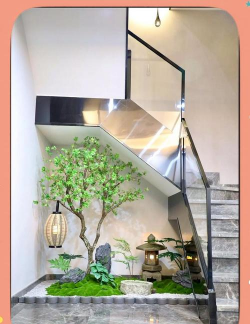楼梯下空间可能有限,建议选择适合的小型盆栽或容器,避免占用过多空间。