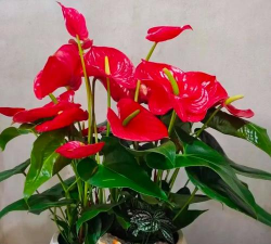 - 红色花卉:如玫瑰、郁金香、大丽花、红掌、紫茉莉等,本身具有红色或深色花色。