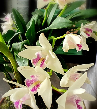 花:石斛兰的花通常为单生,花朵呈杯状或壶状,颜色多样,常见的有黄、白、粉等,花蕊通常为黄色或白色,花期一般在春秋季节。