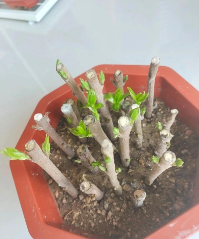 - 将枝条插入湿润的沙土或蛭石中,保持湿润。