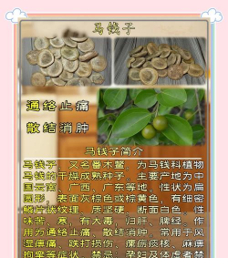 马钱子为马钱科植物马钱(strychnosnux-vomical.)的干燥成熟种子,又名番木鳖。具有通络止痛、散结消肿之功能。原产于印度、越南、缅甸、斯里兰卡等国。我国海南、广东、广西、云南等省、自治区有引种栽培。