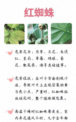 症状:红蜘蛛在叶片背面结网,造成叶片发黄、枯死,严重时会破坏植株。