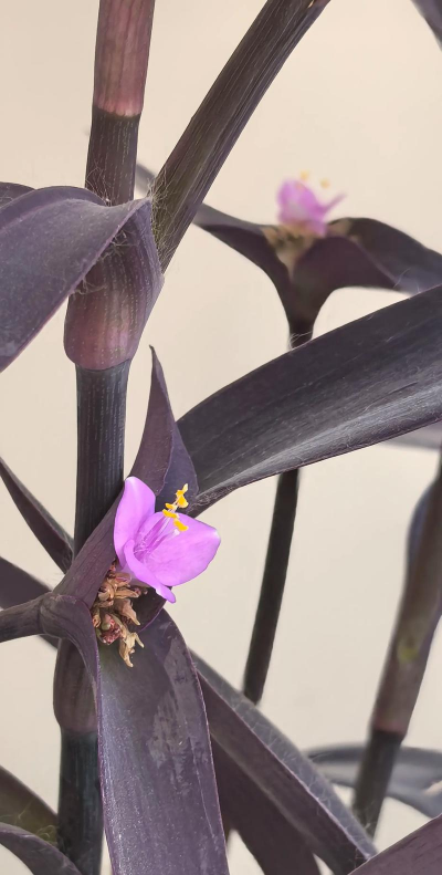紫竹梅是一种观赏花卉,属于竹梅科,其花序通常为总状花序,花序轴细长,花簇生在花轴上,形成整齐的花簇。这种花序结构使其在花坛、花境或盆栽中显得非常美观。