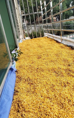 桂花掉落的花果可以用来泡茶,具有清热解暑、润肺止咳的功效。可以将晒干的桂花与茶叶混合,制作桂花茶。