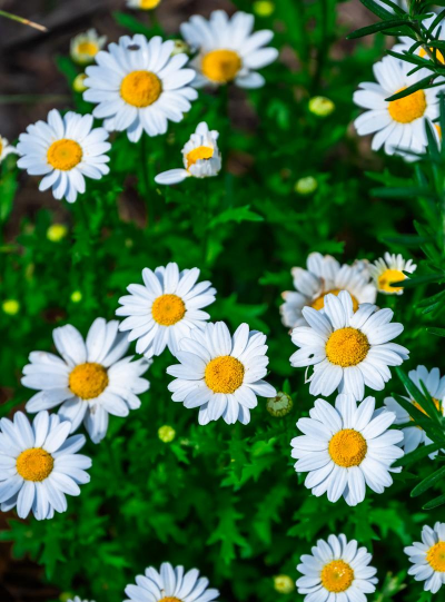 白色:部分品种的雏菊花朵为白色,通常在黄色花基底上形成鲜明对比。