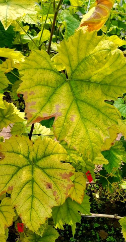 原因:葡萄叶斑病、白粉病、蚜虫等病虫害会导致叶片发黄。