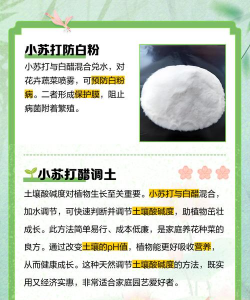 - 小苏打:可适量使用,促进花芽分化和根系发育,但不宜过量。