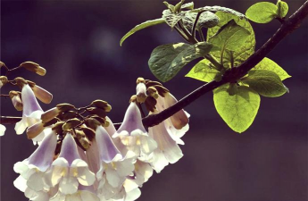 楸叶泡桐:花呈淡紫色,花序呈圆锥状,分布于黄河流域。