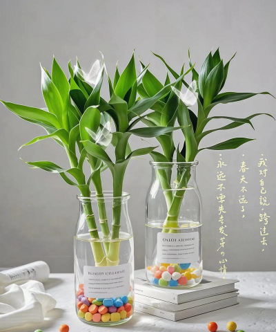 水培:用透明玻璃瓶养护,加水至根部1/2-2/3处,摆放在桌面、茶几上,既能观赏翠绿叶片,又能观察根系生长,干净整洁,每周换1次水即可,适合忙碌的上班族;