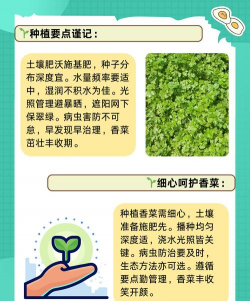 种子处理:香菜种子外壳坚硬,直接播种发芽慢,需提前处理——将种子放在温水中浸泡24小时,捞出后用湿纱布包裹,置于20-25℃环境中催芽,每天冲洗1次,待50%种子露白后播种,发芽率可提高至80%以上;