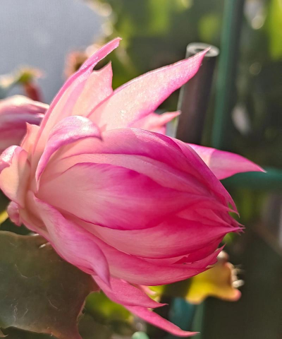 花茎木质化,幼枝及分枝扁平,花朵着生于茎顶,呈玫瑰红色或两侧对称开放,花瓣数层且外折或背曲,花期集中在1-3月(冬季开花)。
