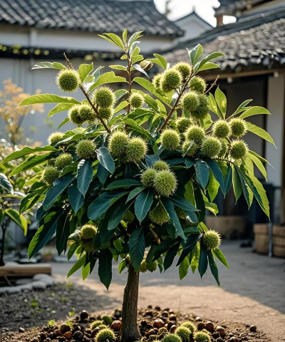 板栗发芽后,将其浅浅地种植在盆土中,注意不要埋得太深。