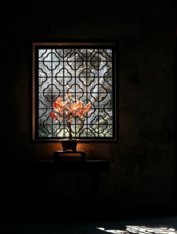 徽州:四水归堂窗,雕刻童子持莲寓意和合。