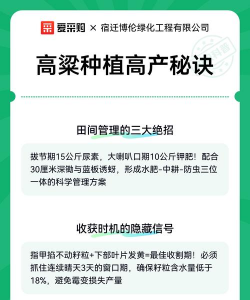 涝害:及时排水,防止根系腐烂。通过以上措施,结合当地实际调整管理细节,可显著提高高粱产量和品质。更多具体操作可参考各地农业部门的技术指南。