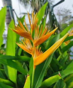 炮仗花与凌霄花攀援植物,花期长(炮仗花可全年开花),适合墙面或棚架装饰,耐高温高湿。