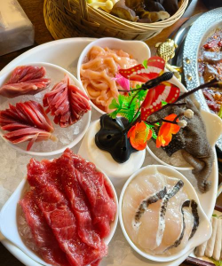 花蛤蒸蛋、虾仁炒花菇、鱿鱼须炒韭菜等,海鲜少量提鲜,蔬菜为主。