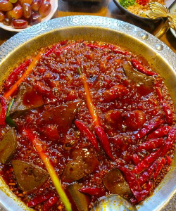 地方风味:湘西擂钵菜(如擂钵茄子配肉末)、花瑶流水席中的酸菜炒鸭杂。
