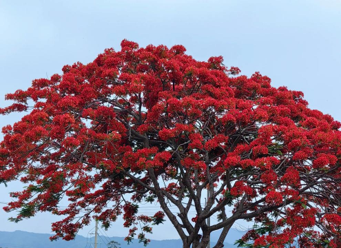 常见病害为根腐病(灵芝菌引起),虫害以夜蛾幼虫为主,需及时喷药或人工防治。凤凰木以其独特的形态、热烈的花色和丰富的文化内涵,成为热带地区极具标志性的树种。
