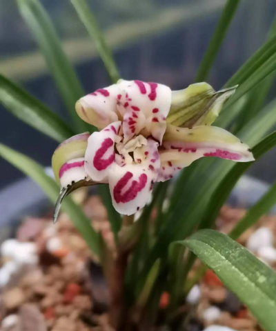 春兰奇花之最,花型似牡丹,花瓣多且边缘卷曲,花色乳黄点缀红斑,被誉为“赛牡丹”。